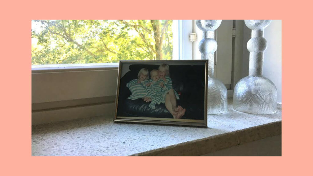 Jos en saisi mukaani kaikkia valokuvia, ottaisin ainakin yllä olevassa kuvassa näkyvän kehystetyn lapsuusmuiston. Tuo valokuva on sekin kulkenut mun mukana lapsuudenkodista omiin koteihin. Ei se ole sinänsä kummallinen, minä ja sisarukseni miljoona vuotta sitten raitayöpaidoissamme. En minä tuota hetkeä muista ja kehyskin on kovin tavallinen. Kuva on silti tärkeä, olen jotenkin kiintynyt siihen. Se kuuluu samaan ”ainahan se on siinä ollut” -sarjaan kuin Päärynäkin.