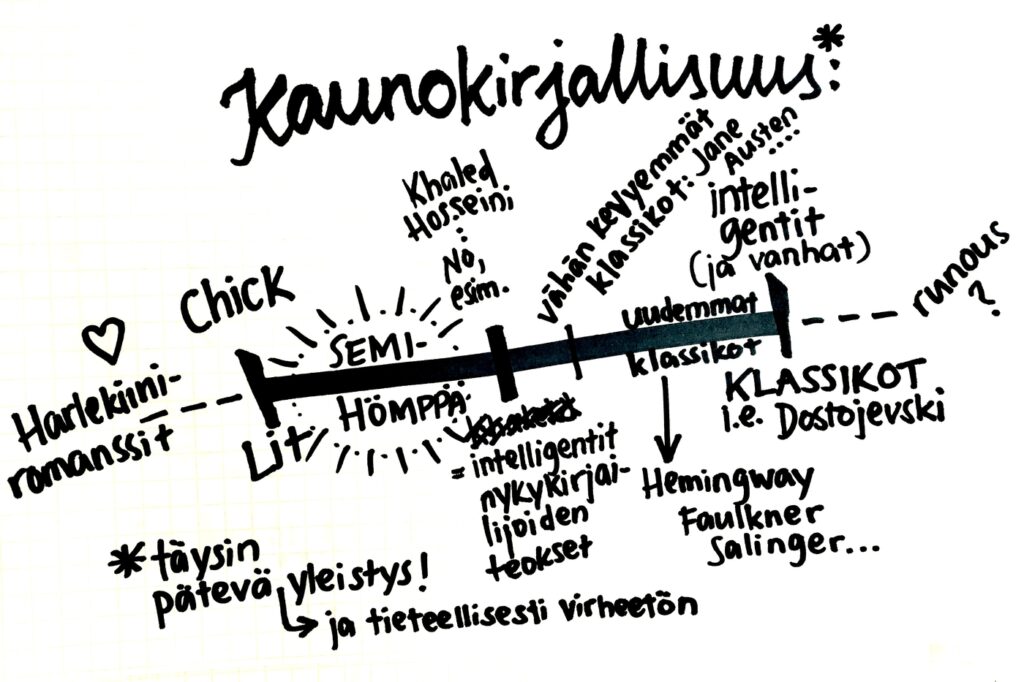 Vaikka tykkäänkin leijua sillä, että olen opiskellut muutaman kurssin maailmankirjallisuutta yliopistolla ja sillä, että olen lukenut Dostojevskin Rikoksen ja rangaistuksen, useimmiten olen kuitenkin melko kaukana tuosta päässäni rakennetusta kirjallisuusnörtti-ideaaliminästä. Ei lähe Hemingwayt, Moby Dick edelleen lukematta. Jotenkin onnistun toistuvasti sekoittamaan Mark Twainin ja Charles Dickensinkin.