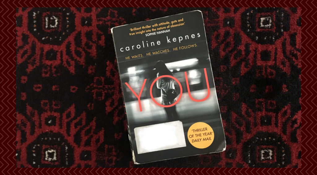 Caroline Kepnesin You (2014) on hypnoottisen hyvin kirjoitettu ”rakkaustarina” (hyvin suuret lainausmerkit tähän!!). Se kertoo Joesta, joka rakastuu Beckiin… tai oikeastaan ”rakastuu”, koska ei se mitään rakkautta ole. Lukija tietää, että Joe on psykopaattinen ja narsistinen stalkkeri. Harmi vaan, että poloinen Beck ei sitä tiedä.